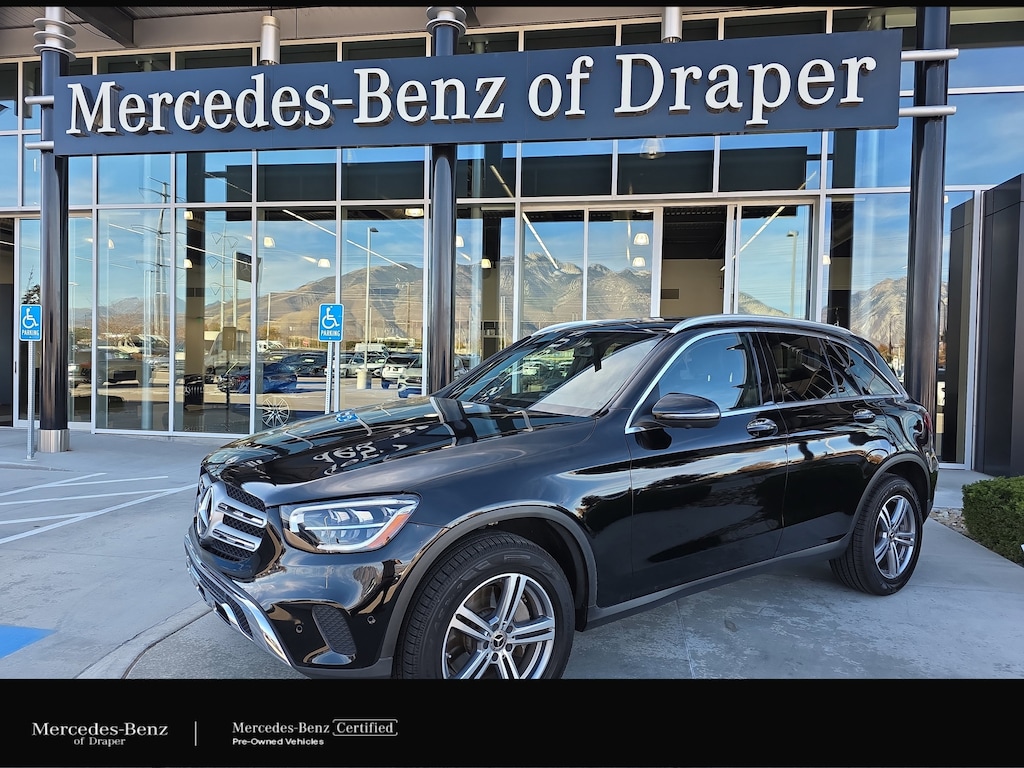 Mercedes-Benz of Draper proudly offers this 2021 Black Mercedes-Benz GLC 300 AWD . It is well equipped and includes these features and benefits: Mercedes-Benz Certified Pre-Owned Certified, 10.25 Center Touchscreen Display, 3.27 Axle Ratio, 4-Way Lumbar Support, 4-Wheel Disc Brakes, 6 Speakers, ABS brakes, Air Conditioning, Alloy wheels, AM/FM radio, Apple CarPlay®/Android Auto®, Auto tilt-away steering wheel, Auto-dimming door mirrors, Auto-dimming Rear-View mirror, Automatic temperature control, Brake assist, Bumpers: body-color, Child-Seat-Sensing Airbag, Delay-off headlights, Driver door bin, Driver vanity mirror, Dual front impact airbags, Dual front side impact airbags, Electronic Stability Control, Emergency communication system: eCall Emergency System, Exterior Parking Camera Rear, Four wheel independent suspension, Front anti-roll bar, Front Bucket Seats, Front Center Armrest, Front dual zone A/C, Front reading lights, Fully automatic headlights, Garage door transmitter: HomeLink, Genuine wood dashboard insert, Heated door mirrors, Heated Front Bucket Seats, Heated front seats, Illuminated entry, Knee airbag, Leather steering wheel, Low tire pressure warning, MB-Tex Upholstery, Memory seat, Occupant sensing airbag, Outside temperature display, Overhead airbag, Overhead console, Panic alarm, Passenger door bin, Passenger vanity mirror, Power door mirrors, Power driver seat, Power Front Seat w/Driver Memory, Power Liftgate, Power passenger seat, Power steering, Power windows, Radio data system, Radio: MBUX Multimedia System, Rain sensing wipers, Rear anti-roll bar, Rear fog lights, Rear reading lights, Rear seat center armrest, Rear window defroster, Rear window wiper, Remote keyless entry, Roof rack: rails only, Security system, Speed control, Speed-sensing steering, Split folding rear seat, Spoiler, Steering wheel memory, Steering wheel mounted audio controls, Tachometer, Telescoping steering wheel, Tilt steering wheel, Traction control, Trip computer, Turn signal indicator mirrors, Variably intermittent wipers, and Wheels: 8J x 18 ET 38 Split 5-Spoke.