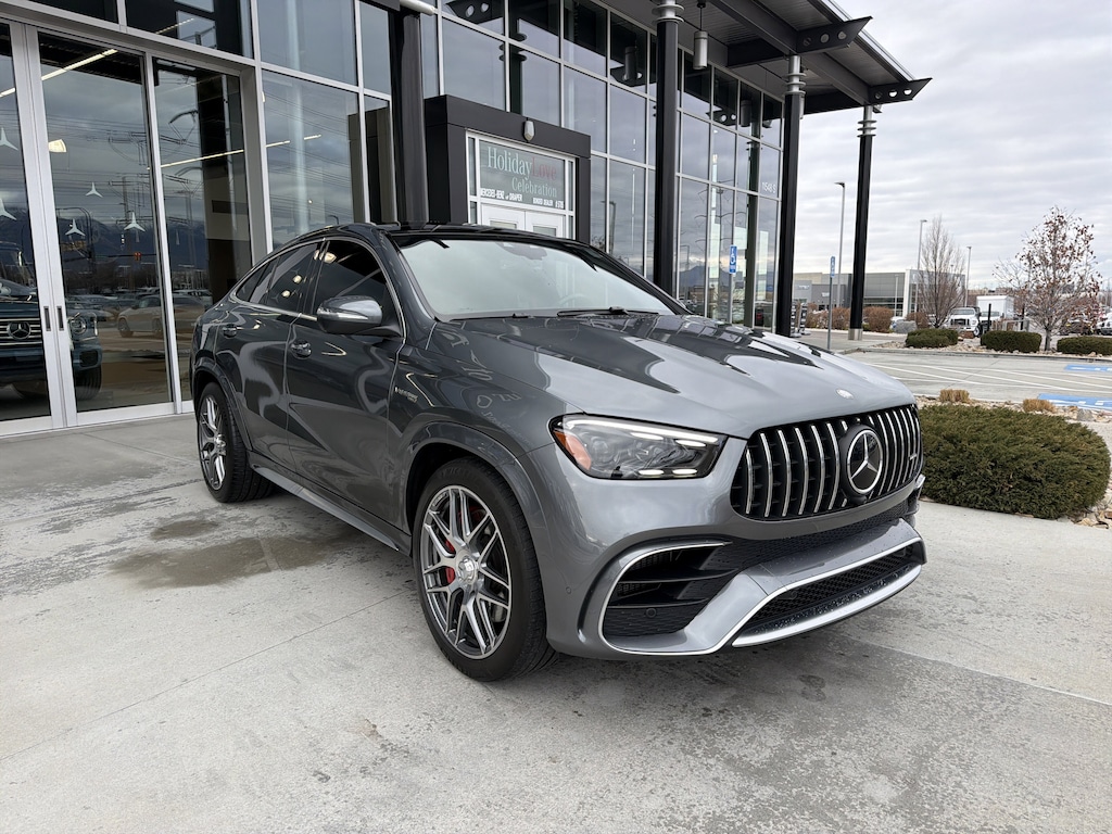Mercedes-Benz of Draper proudly offers this 2024 Selenite Gray Metallic Mercedes-Benz GLE 63 S AMG® AWD . It is well equipped and includes these features and benefits: Mercedes-Benz Certified Pre-Owned Certified, 13 Speakers, 4-Wheel Disc Brakes, ABS brakes, Adaptive suspension, Air Conditioning, Alloy wheels, AM/FM radio: SiriusXM, Anti-whiplash front head restraints, Apple CarPlay®/Android Auto®, Auto High-beam Headlights, Auto tilt-away steering wheel, Auto-dimming door mirrors, Auto-dimming Rear-View mirror, Auto-leveling suspension, Automatic temperature control, Axle Ratio: TBD, Brake assist, Brushed Aluminum Trim, Bumpers: body-color, Child-Seat-Sensing Airbag, Compass, Delay-off headlights, Driver door bin, Driver vanity mirror, Dual front impact airbags, Dual front side impact airbags, Electronic Stability Control, Emergency communication system: eCall Emergency System, Exclusive Nappa Leather Upholstery, Exterior Parking Camera Rear, Four wheel independent suspension, Front anti-roll bar, Front Bucket Seats, Front Center Armrest, Front dual zone A/C, Front reading lights, Fully automatic headlights, Garage door transmitter: HomeLink, Heads-Up Display, Heated door mirrors, Heated front seats, Heated steering wheel, High Performance Tires, Htd & Vent Power Front Seats w/Memory, Illuminated entry, Knee airbag, Low tire pressure warning, Memory seat, Nappa Leather Dashboard & Door Panels, Navigation system: MBUX, Occupant sensing airbag, Outside temperature display, Overhead airbag, Panic alarm, Passenger door bin, Passenger vanity mirror, Power adjustable front head restraints, Power door mirrors, Power driver seat, Power Liftgate, Power moonroof: Panorama, Power passenger seat, Power steering, Power windows, Premium audio system: MBUX, Radio data system, Radio: 12.3 Media Display w/Touchscreen, Rain sensing wipers, Rear anti-roll bar, Rear fog lights, Rear reading lights, Rear seat center armrest, Rear window defroster, Remote keyless entry, Security system, Speed control, Speed-sensing steering, Speed-Sensitive Wipers, Split folding rear seat, Spoiler, Sport steering wheel, Steering wheel memory, Steering wheel mounted audio controls, Tachometer, Telescoping steering wheel, Tilt steering wheel, Traction control, Trip computer, Turn signal indicator mirrors, Ventilated front seats, Weather band radio, and Wheels: 22 AMG® Multispoke. Burmester is a registered trademark of Burmester Audiosysteme GmbH, Berlin, Germany. Bluetooth is a registered Mark of Bluetooth SIG, Inc.