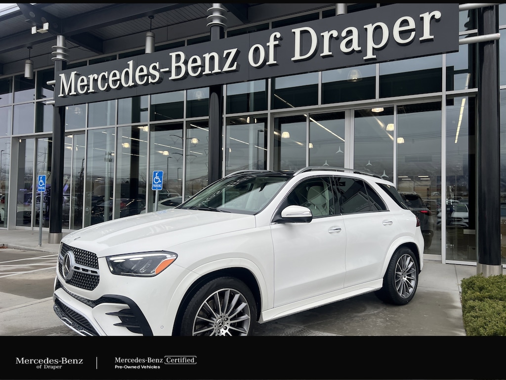 Mercedes-Benz of Draper proudly offers this 2024 White Mercedes-Benz GLE 350 AWD . It is well equipped and includes these features and benefits: Mercedes-Benz Certified Pre-Owned Certified, 4-Wheel Disc Brakes, 8 Speakers, ABS brakes, Air Conditioning, Alloy wheels, AM/FM radio: SiriusXM, Anti-whiplash front head restraints, Apple CarPlay®/Android Auto®, Auto High-beam Headlights, Auto tilt-away steering wheel, Auto-dimming door mirrors, Auto-dimming Rear-View mirror, Automatic temperature control, Brake assist, Bumpers: body-color, Compass, Delay-off headlights, Driver door bin, Driver vanity mirror, Dual front impact airbags, Dual front side impact airbags, Electronic Stability Control, Emergency communication system: eCall Emergency System, Exterior Parking Camera Rear, Four wheel independent suspension, Front anti-roll bar, Front Bucket Seats, Front Center Armrest, Front dual zone A/C, Front reading lights, Fully automatic headlights, Garage door transmitter: HomeLink, Heated door mirrors, Heated front seats, Heated Power Front Seats w/Memory, HERMES Communications Module LTE, Illuminated entry, Knee airbag, Leather steering wheel, Low tire pressure warning, MB Navigation, MB-Tex Upholstery, Memory seat, Navigation system: MBUX, Occupant sensing airbag, Outside temperature display, Overhead airbag, Panic alarm, Passenger door bin, Passenger vanity mirror, Power adjustable front head restraints, Power door mirrors, Power driver seat, Power Liftgate, Power moonroof, Power passenger seat, Power steering, Power windows, Premium audio system: MBUX, Radio data system, Radio: 12.3 Media Display w/Touchscreen, Rain sensing wipers, Rear anti-roll bar, Rear fog lights, Rear reading lights, Rear seat center armrest, Rear window defroster, Rear window wiper, Remote keyless entry, Security system, SiriusXM Satellite Radio, Speed control, Speed-sensing steering, Speed-Sensitive Wipers, Split folding rear seat, Spoiler, Steering wheel memory, Steering wheel mounted audio controls, Tachometer, TBD Axle Ratio, Telescoping steering wheel, Tilt steering wheel, Traction control, Trip computer, Turn signal indicator mirrors, Weather band radio, Wheels: 19 Twin 5-Spoke, Wireless Charging, and Wireless Smartphone Integration.