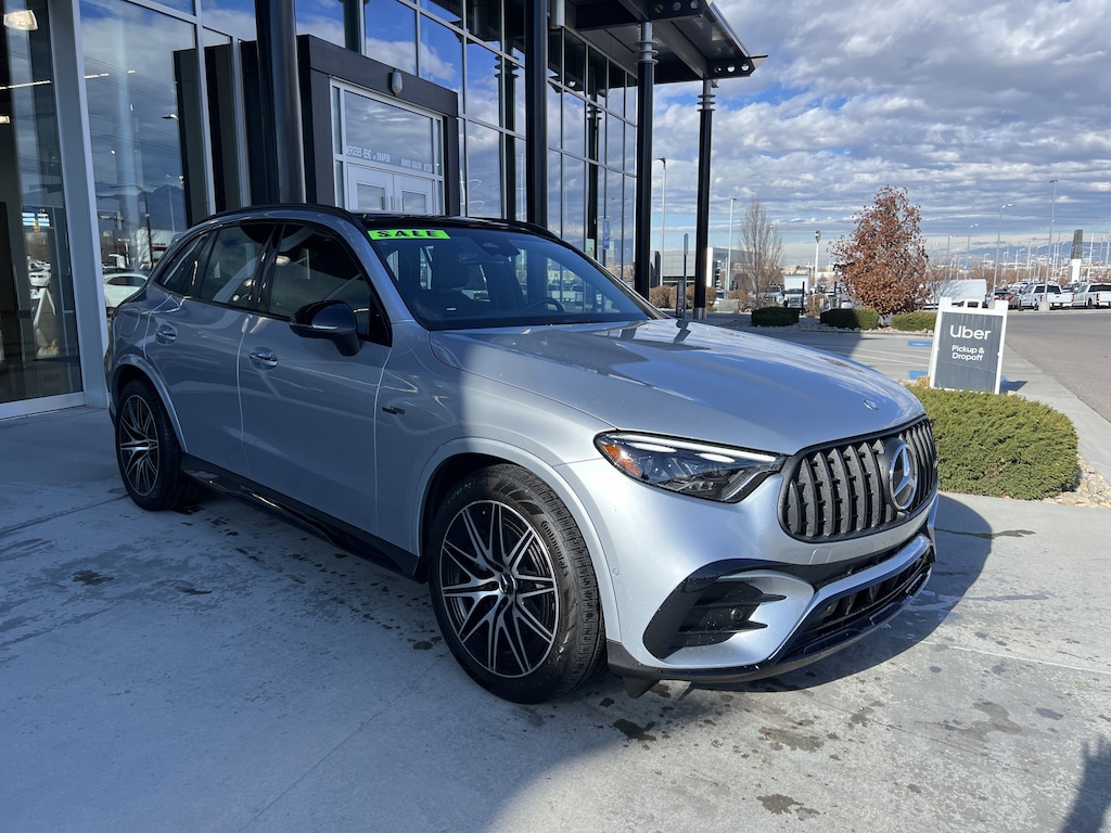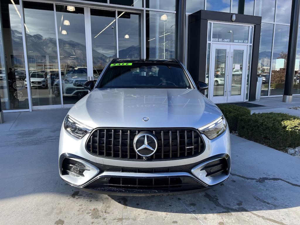 Mercedes-Benz of Draper proudly offers this 2025 Silver Mercedes-Benz GLC 43 AMG® AWD . It is well equipped and includes these features and benefits: AMG® Night Package Components, AMG® Night Package Plus (Black Model Badging, Black Roof Rails, and Darkened AMG® Grille), Pinnacle Trim (Augmented Video for Navigation, Burmester® 3D Surround Sound System, DIGITAL LIGHT w/Projections, Enhanced Active Ambient Lighting, Head-Up Display, Heat & Noise Insulating Glass, MBUX Navigation, Surround View System, and Transparent Front Hood), Mercedes-Benz Certified Pre-Owned Certified, 11.9 Center Touchscreen Display, 4-Wheel Disc Brakes, 8 Speakers, ABS brakes, Adaptive suspension, Air Conditioning, Alloy wheels, AM/FM radio: SiriusXM, Apple CarPlay®/Android Auto®, Auto High-beam Headlights, Auto tilt-away steering wheel, Auto-dimming door mirrors, Auto-dimming Rear-View mirror, Auto-leveling suspension, Automatic temperature control, Brake assist, Bumpers: body-color, Child-Seat-Sensing Airbag, Compass, Delay-off headlights, Driver door bin, Driver vanity mirror, Dual front impact airbags, Dual front side impact airbags, Electronic Stability Control, Emergency communication system: eCall Emergency System, Exterior Parking Camera Rear, Four wheel independent suspension, Front anti-roll bar, Front Bucket Seats, Front Center Armrest, Front dual zone A/C, Front reading lights, Fully automatic headlights, Garage door transmitter: HomeLink, Genuine wood dashboard insert, Head restraints memory, Heated door mirrors, Heated front seats, Heated steering wheel, Illuminated entry, Knee airbag, Leather steering wheel, Low tire pressure warning, MB-Tex/Microfiber Upholstery, Memory seat, Occupant sensing airbag, Outside temperature display, Overhead airbag, Overhead console, Panic alarm, Passenger door bin, Passenger vanity mirror, Power adjustable front head restraints, Power door mirrors, Power driver seat, Power Heated Front Bucket Seats, Power Liftgate, Power moonroof, Power passenger seat, Power steering, Power windows, Premium audio system: MBUX, Radio data system, Radio: MBUX, Rain sensing wipers, Rear anti-roll bar, Rear fog lights, Rear reading lights, Rear seat center armrest, Rear window defroster, Rear window wiper, Remote keyless entry, Security system, SiriusXM Satellite Radio, Speed control, Speed-sensing steering, Split folding rear seat, Spoiler, Sport steering wheel, Steering wheel memory, Steering wheel mounted audio controls, Tachometer, Telescoping steering wheel, Tilt steering wheel, Traction control, Trip computer, Turn signal indicator mirrors, Variably intermittent wipers, Wheels: 20 AMG® Twin 10-Spoke, Wireless Android Auto®, and Wireless Apple CarPlay®.