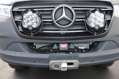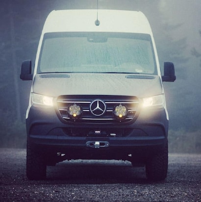 Add aggressive styling with ultimate function to the front of your 2012+ Mercedes-Benz Sprinter Van. This mount bolts on using existing mounting points behind the grill to provide a rigid fixation for your favorite high power auxiliary lights. This mount is specifically designed around the Baja Designs LP-9 or LP6 lights. The mount makes the lights appear to be floating in front of the grill for a sleek and aggressive front end update. With additional front lighting on your Sprinter, you can have the ability to travel further both on and off-road.