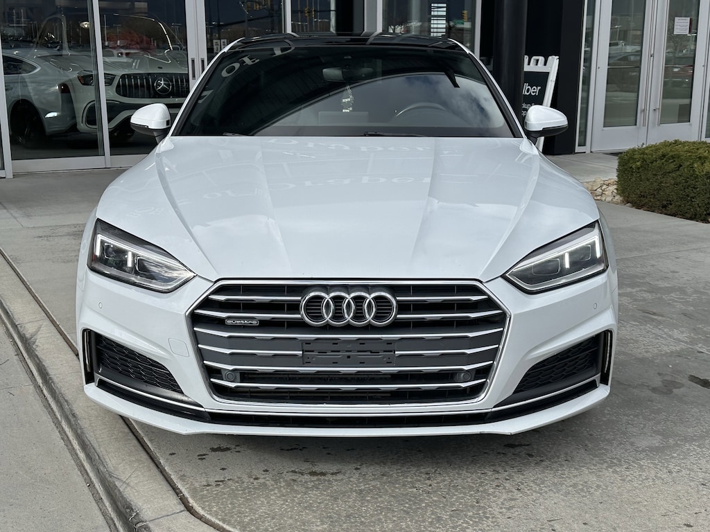 Mercedes-Benz of Draper proudly offers this 2018 Glacier White Audi A5 2.0T Premium Plus AWD . It is well equipped and includes these features and benefits: quattro, Leather, 10 Speakers, 4-Wheel Disc Brakes, ABS brakes, Air Conditioning, Alloy wheels, AM/FM radio, Anti-whiplash front head restraints, Audi smartphone interface (Apple CarPlay/Android Auto), Auto-dimming Rear-View mirror, Automatic temperature control, Brake assist, Bumpers: body-color, Compass, Delay-off headlights, Driver door bin, Driver vanity mirror, Dual front impact airbags, Dual front side impact airbags, Electronic Stability Control, Exterior Parking Camera Rear, Four wheel independent suspension, Front anti-roll bar, Front Bucket Seats, Front Center Armrest, Front dual zone A/C, Front fog lights, Front reading lights, Garage door transmitter: HomeLink, Heated door mirrors, High intensity discharge headlights: Bi-xenon, Illuminated entry, Knee airbag, Leather Seating Surfaces, Leather Shift Knob, Leather steering wheel, Occupant sensing airbag, Outside temperature display, Overhead airbag, Overhead console, Panic alarm, Passenger door bin, Passenger vanity mirror, Power adjustable front head restraints, Power door mirrors, Power driver seat, Power Liftgate, Power moonroof, Power passenger seat, Power steering, Power windows, Radio data system, Radio: Audi Sound System, Rain sensing wipers, Rear air conditioning, Rear anti-roll bar, Rear reading lights, Rear seat center armrest, Rear window defroster, Remote keyless entry, Speed control, Speed-sensing steering, Speed-Sensitive Wipers, Split folding rear seat, Steering wheel mounted audio controls, Tachometer, Telescoping steering wheel, Tilt steering wheel, Traction control, Trip computer, Turn signal indicator mirrors, Variably intermittent wipers, and Wheels: 18 x 8.5 10-Spoke-Dynamic-Design.