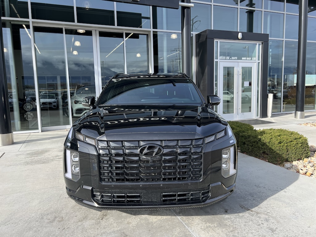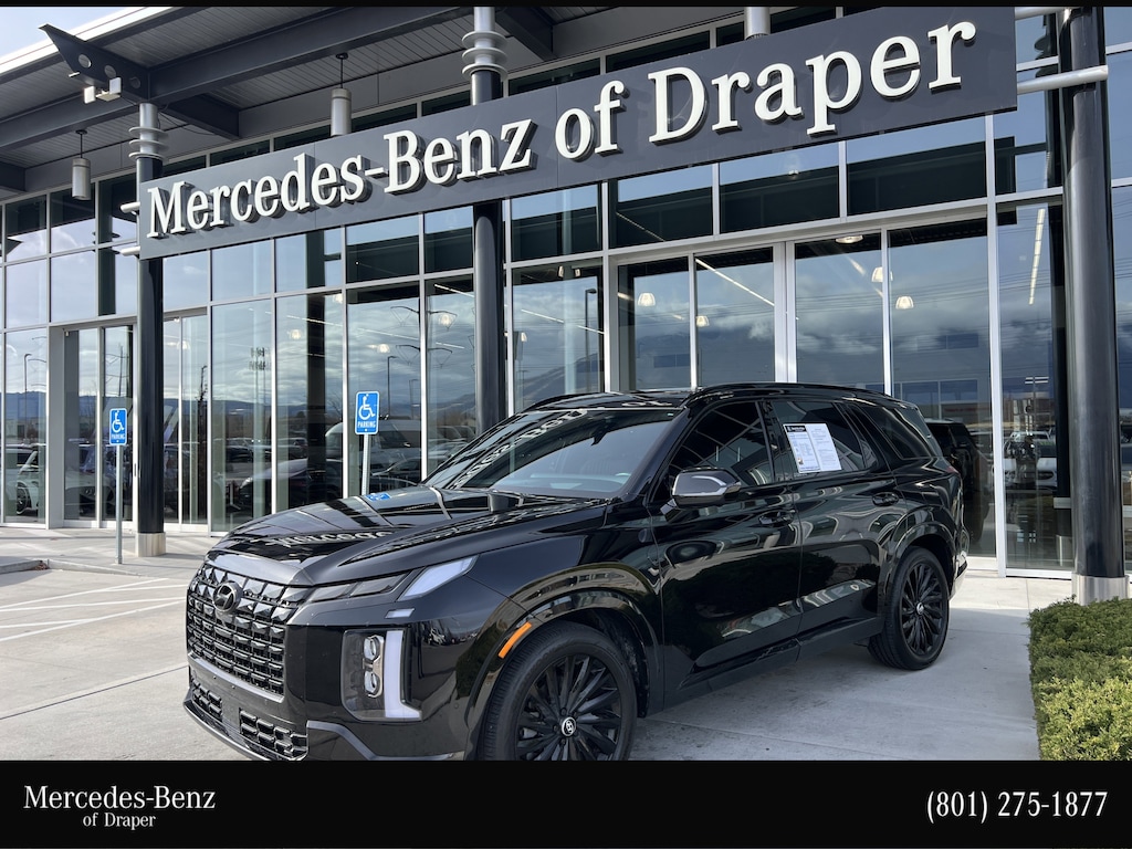 Mercedes-Benz of Draper proudly offers this 2025 Abyss Black Pearl Hyundai Palisade Calligraphy Night Edition AWD . It is well equipped and includes these features and benefits: Option Group 01, 12 Speakers, 3rd row seats: split-bench, 4-Wheel Disc Brakes, ABS brakes, Air Conditioning, Alloy wheels, AM/FM radio: SiriusXM, Apple CarPlay & Android Auto, Auto High-beam Headlights, Auto-dimming door mirrors, Auto-dimming Rear-View mirror, Auto-leveling suspension, Automatic temperature control, Black Lug Nuts & Wheel Locks, Brake assist, Bumpers: body-color, Cargo Blocks, Cargo Cover, Cargo Net, Cargo Tray, Carpeted Floor Mats, Compass, Delay-off headlights, Driver door bin, Driver vanity mirror, Dual front impact airbags, Dual front side impact airbags, Electronic Stability Control, Emergency communication system, Exterior Parking Camera Rear, Four wheel independent suspension, Front anti-roll bar, Front Bucket Seats, Front Center Armrest, Front dual zone A/C, Front reading lights, Fully automatic headlights, Garage door transmitter: HomeLink, harman/kardon® Speakers, Heads-Up Display, Heated & Ventilated Front Bucket Seats, Heated door mirrors, Heated front seats, Heated rear seats, Heated steering wheel, Illuminated entry, Knee airbag, Leather steering wheel, Low tire pressure warning, Memory seat, Microfiber Suede Seat Trim, Navigation System, Occupant sensing airbag, Outside temperature display, Overhead airbag, Overhead console, Panic alarm, Passenger door bin, Passenger vanity mirror, Power door mirrors, Power driver seat, Power Liftgate, Power moonroof, Power passenger seat, Power steering, Power windows, Radio data system, Radio: AM/FM/MP3 Premium Audio System, Rain sensing wipers, Rear air conditioning, Rear anti-roll bar, Rear audio controls, Rear reading lights, Rear side impact airbag, Rear window defroster, Rear window wiper, Reclining 3rd row seat, Remote keyless entry, Roadside Assistance Kit, Roof rack, Security system, Speed control, Speed-sensing steering, Split folding rear seat, Spoiler, Steering wheel mounted audio controls, Tachometer, Telescoping steering wheel, Tilt steering wheel, Traction control, Trip computer, Turn signal indicator mirrors, Variably intermittent wipers, Ventilated front seats, Ventilated rear seats, and Wheels: 20 x 7.5J Black Liquid Paint Alloy.