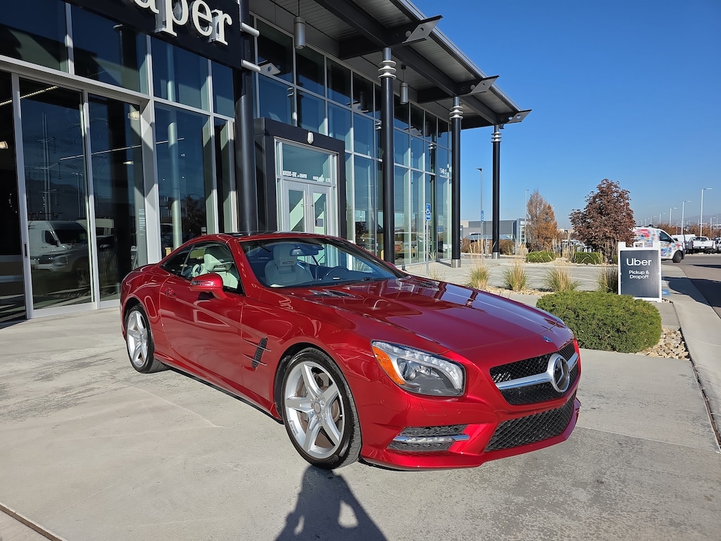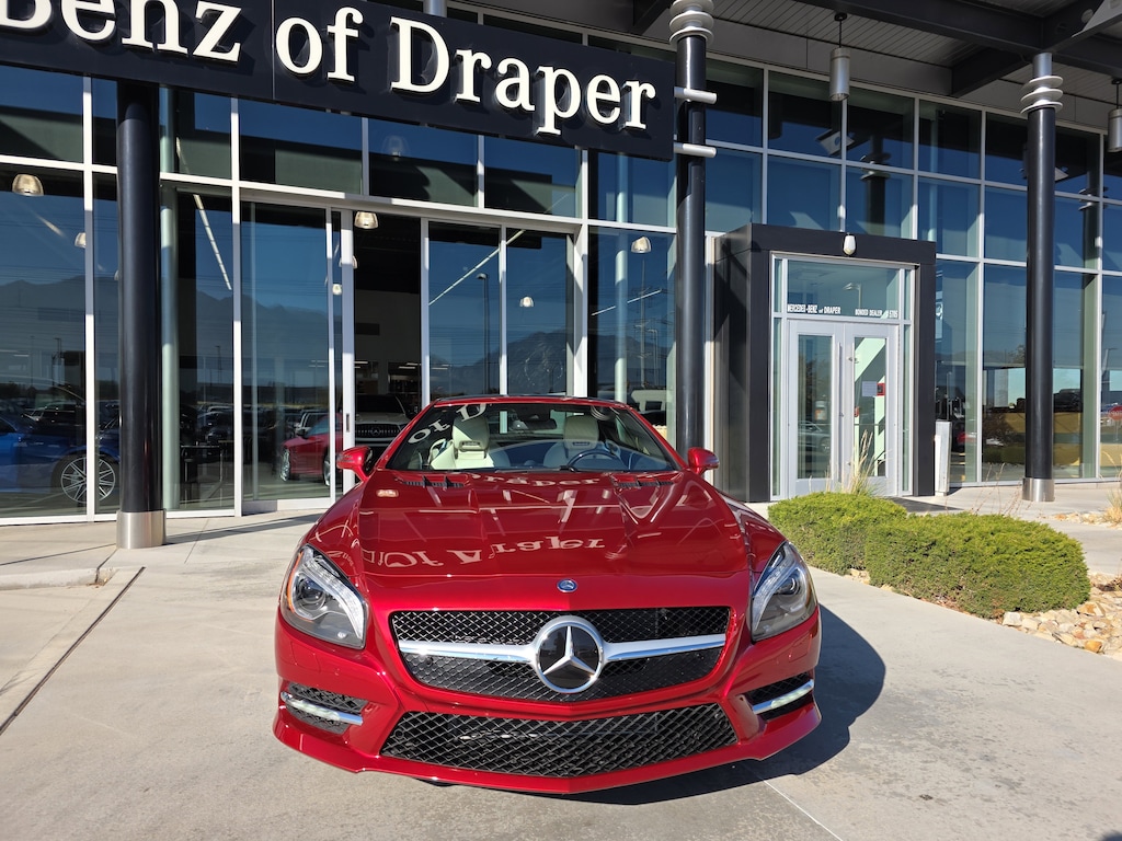 Mercedes-Benz of Draper proudly offers this 2015 Cardinal Red Metallic Mercedes-Benz SL-Class SL 400 Roadster RWD . It is well equipped and includes these features and benefits: Driver Assistance Package (Active Blind Spot Assist, Active Lane Keeping Assist, and DISTRONIC PLUS® w/Pre-Safe Brake), Premium I Package (Active Multicontour Seats w/Massage, AIRSCARF® Neck-Level Heating System, Electronic Trunk Closer, Heated & Active Ventilated Front Seats, KEYLESS GO® with HANDS-FREE ACCESS, PARKTRONIC w/Active Parking Assist, and Rear-View Camera), Sport Wheel Package (19 x 8.5 Fr x 19 x 9.5 Rr AMG® 5-Spoke Wheels, Sport Brake System, and Sport Steering Wheel), Black/Platinum White Leather, 11 Speakers, 4-Wheel Disc Brakes, ABS brakes, Active Multicontour Seats, Adaptive suspension, Air Conditioning, Alloy wheels, AM/FM radio: SiriusXM, Anti-whiplash front head restraints, Auto High-beam Headlights, Auto tilt-away steering wheel, Auto-dimming door mirrors, Auto-dimming Rear-View mirror, Automatic temperature control, Brake assist, Bumpers: body-color, CD player, Child-Seat-Sensing Airbag, Convertible HardTop, Convertible roof lining, Convertible roof wind blocker, Delay-off headlights, Driver door bin, Driver vanity mirror, Dual front impact airbags, Dual front side impact airbags, Electronic Stability Control, Emergency communication system: mbrace2, Four wheel independent suspension, Front anti-roll bar, Front Bucket Seats, Front Center Armrest, Front dual zone A/C, Front fog lights, Front reading lights, Garage door transmitter: Homelink, Genuine wood console insert, Genuine wood dashboard insert, Genuine wood door panel insert, Glass rear window, harman/kardon® Logic 7® Surround Sound System, harman/kardon® Speakers, Head restraints memory, Headlight cleaning, Heated door mirrors, Heated front seats, Heated Seats, High intensity discharge headlights: Bi-Xenon, HVAC memory, Illuminated entry, Integrated roll-over protection, iPod/MP3 Media Interface, Knee airbag, Leather Shift Knob, Leather Upholstery, Low tire pressure warning, Memory seat, Navigation system: COMAND®, Occupant sensing airbag, Outside temperature display, Overhead airbag, Panic alarm, Passenger door bin, Passenger vanity mirror, Power adjustable front head restraints, Power convertible roof, Power door mirrors, Power driver seat, Power passenger seat, Power steering, Power windows, Premium audio system: COMAND®, Radio data system, Radio: COMAND® System w/Navigation, Rain sensing wipers, Rear anti-roll bar, Rear fog lights, Rear window defroster, Remote keyless entry, Security system, SIRIUS XM Satellite Radio, Speed control, Speed-sensing steering, Steering wheel memory, Steering wheel mounted audio controls, Tachometer, Telescoping steering wheel, Tilt steering wheel, Traction control, Trip computer, Turn signal indicator mirrors, Variably intermittent wipers, Weather band radio, and Wheels: 18 x 8.5 Fr & 18 x 9.5 Rr Twin 5-Spoke.
