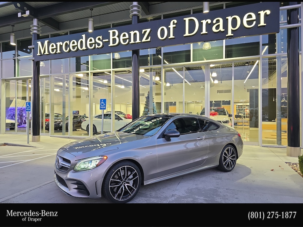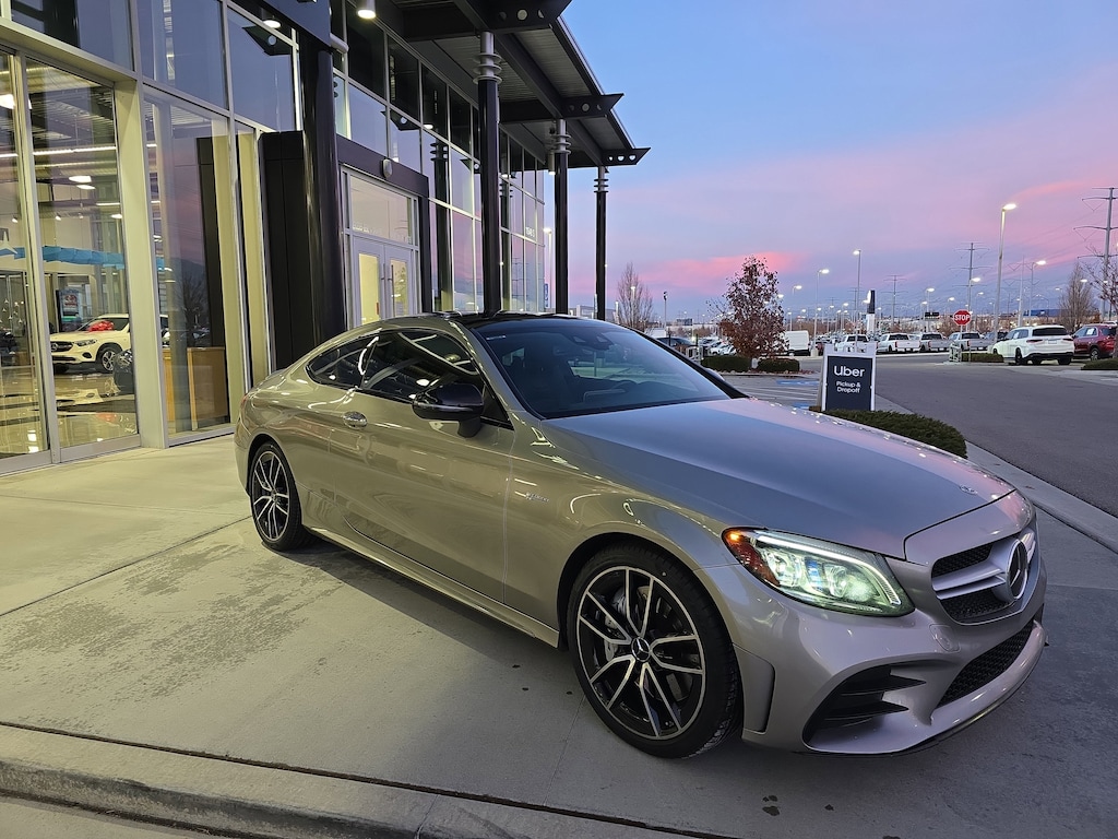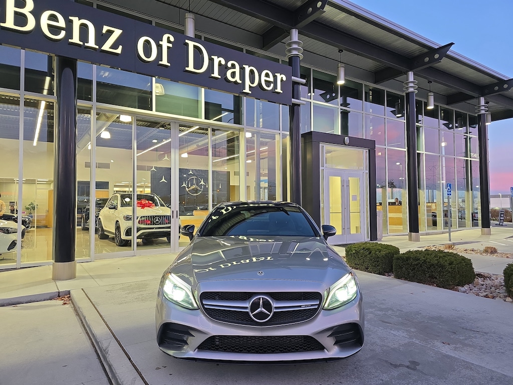 Mercedes-Benz of Draper proudly offers this 2019 Mojave Silver Metallic Mercedes-Benz C 43 AMG® AWD . It is well equipped and includes these features and benefits: 4MATIC®, 13 Speakers, 18 5-Spoke Wheels, 4-Way Lumbar Support, 4-Wheel Disc Brakes, ABS brakes, Adaptive suspension, Air Conditioning, Alloy wheels, AM/FM radio: SiriusXM, Android Auto®, Apple CarPlay®, Apple CarPlay®/Android Auto®, Auto tilt-away steering wheel, Auto-dimming door mirrors, Auto-dimming Rear-View mirror, Automatic temperature control, Brake assist, Bumpers: body-color, Burmester® Surround Sound System, Compass, Delay-off headlights, Driver door bin, Driver vanity mirror, Dual front impact airbags, Dual front side impact airbags, Electronic Stability Control, Emergency communication system, Exterior Parking Camera Rear, Four wheel independent suspension, Front anti-roll bar, Front Bucket Seats, Front Center Armrest, Front dual zone A/C, Front reading lights, Fully automatic headlights, Garage door transmitter: Homelink, Head restraints memory, Heated door mirrors, Heated front seats, Illuminated entry, Knee airbag, Low tire pressure warning, MB-Tex/DINAMICA Upholstery, Memory seat, Occupant sensing airbag, Outside temperature display, Overhead airbag, Overhead console, Panic alarm, Passenger door bin, Passenger vanity mirror, Power adjustable front head restraints, Power door mirrors, Power driver seat, Power Driver Seat & Steering Column w/Memory, Power Heated Front Seats w/Memory, Power moonroof: Panorama, Power passenger seat, Power Passenger Seat w/Memory, Power steering, Power windows, Radio data system, Radio: Audio 20, Rain sensing wipers, Rear anti-roll bar, Rear fog lights, Rear window defroster, Remote keyless entry, Security system, SiriusXM Radio, Smartphone Integration, Speed control, Speed-sensing steering, Split folding rear seat, Spoiler, Sport steering wheel, Steering wheel memory, Steering wheel mounted audio controls, Tachometer, Telescoping steering wheel, Tilt steering wheel, Traction control, Trip computer, Turn signal indicator mirrors, Variably intermittent wipers, and Weather band radio.