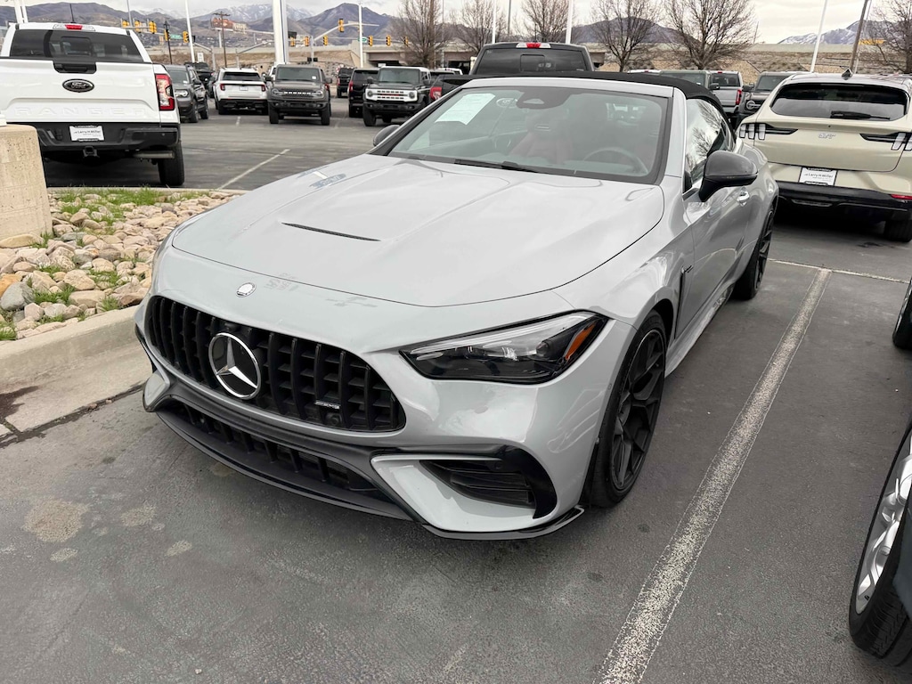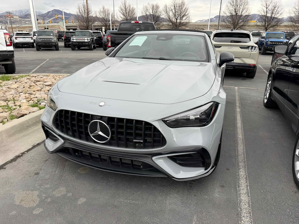 Mercedes-Benz of Draper proudly offers this 2025 White Mercedes-Benz CLE CLE 53 AMG® AWD . It is well equipped and includes these features and benefits: 3.0L I6 Turbo, 11.9 Center Touchscreen Display, 15 Speakers, 4-Wheel Disc Brakes, ABS brakes, Adaptive suspension, Air Conditioning, Alloy wheels, AM/FM Radio, AM/FM radio: SiriusXM w/360L, Apple CarPlay®/Android Auto®, Auto High-beam Headlights, Auto tilt-away steering wheel, Auto-dimming door mirrors, Auto-dimming Rear-View mirror, Automatic temperature control, Brake assist, Bumpers: body-color, Child-Seat-Sensing Airbag, Compass, Convertible roof lining, Convertible roof wind blocker, Delay-off headlights, Driver door bin, Driver vanity mirror, Dual front impact airbags, Dual front side impact airbags, Electronic Stability Control, Emergency communication system: Mercedes-Benz Emergency Call Service, Exterior Parking Camera Rear, Four wheel independent suspension, Front anti-roll bar, Front Bucket Seats, Front Center Armrest, Front dual zone A/C, Front reading lights, Fully automatic headlights, Garage door transmitter: HomeLink, Glass rear window, HD Radio, Head restraints memory, Heated door mirrors, Heated Front Seats, Heated front seats, Illuminated entry, Integrated roll-over protection, Knee airbag, Leather steering wheel, Low tire pressure warning, MB-Tex/Microfiber Upholstery w/Red Stitching, Memory seat, Navigation system: MBUX, Occupant sensing airbag, Outside temperature display, Overhead airbag, Overhead console, Panic alarm, Passenger door bin, Passenger vanity mirror, Piano Black Lacquer Center Console, Power adjustable front head restraints, Power convertible roof, Power door mirrors, Power driver seat, Power passenger seat, Power steering, Power windows, Radio data system, Rain sensing wipers, Rear anti-roll bar, Rear fog lights, Rear window defroster, Remote keyless entry, Security system, SiriusXM Satellite Radio, Speed control, Speed-sensing steering, Split folding rear seat, Spoiler, Sport steering wheel, Steering wheel memory, Steering wheel mounted audio controls, Tachometer, Telescoping steering wheel, Tilt steering wheel, Traction control, Trip computer, Turn signal indicator mirrors, Variably intermittent wipers, Wheels: 19 AMG® Multi-Spoke w/Black Accents, Wireless Android Auto®, and Wireless Apple CarPlay®. Burmester is a registered trademark of Burmester Audiosysteme GmbH, Berlin, Germany. Bluetooth is a registered Mark of Bluetooth SIG, Inc.