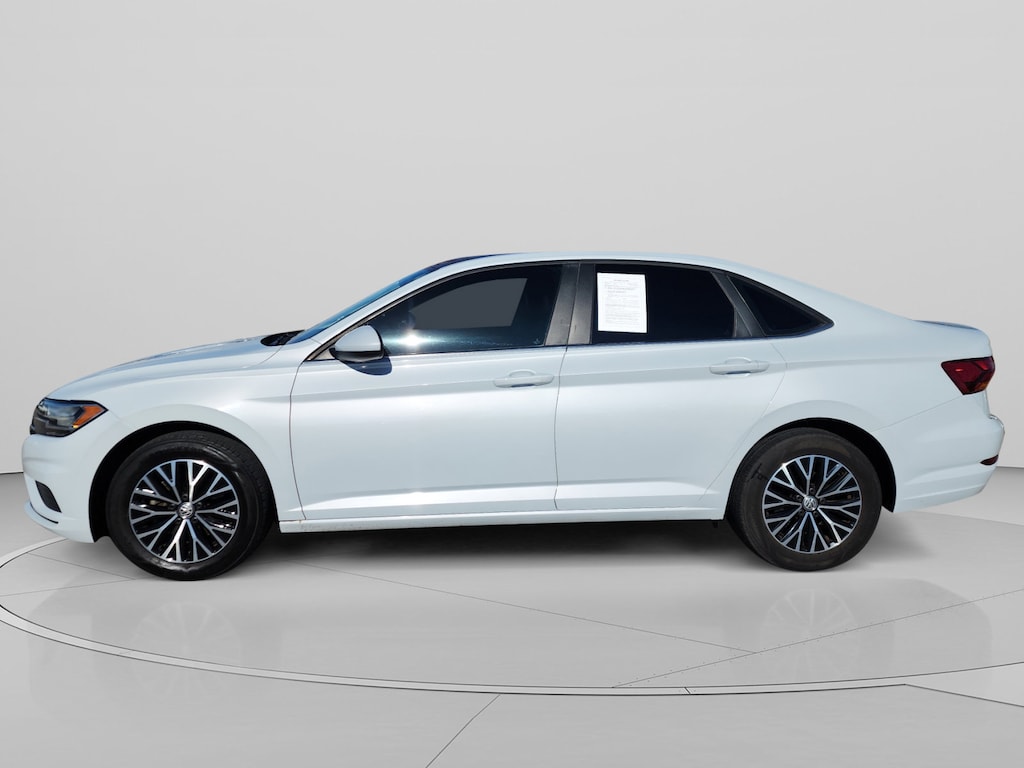 Mercedes-Benz of Draper proudly offers this 2019 White Silver Metallic Volkswagen Jetta 1.4T SE FWD . It is well equipped and includes these features and benefits: Cold Weather Package (Heated Front Washer Nozzles, Heated Rear Outboard Seating Positions, Heated Steering Wheel, Lower Windshield Heated Wiper Area, Remote Engine Start w/Remote Key Fob, and Washer Fluid Level Indicator), Titan Black Premium Synthetic, 4 Speakers, 4-Wheel Disc Brakes, ABS brakes, Air Conditioning, Alloy wheels, AM/FM radio, Automatic temperature control, Brake assist, Bumpers: body-color, Delay-off headlights, Driver door bin, Driver vanity mirror, Dual front impact airbags, Dual front side impact airbags, Electronic Stability Control, Exterior Parking Camera Rear, Front anti-roll bar, Front Bucket Seats, Front Center Armrest, Front dual zone A/C, Front reading lights, Front wheel independent suspension, Fully automatic headlights, Heated door mirrors, Heated Front Comfort Seats, Heated front seats, Heavy Duty Trunk Liner w/VW CarGo Blocks, Illuminated entry, Leather Shift Knob, Low tire pressure warning, Monster Mats w/Logo Rubber Mats Kit (Set of 4), Occupant sensing airbag, Outside temperature display, Overhead airbag, Overhead console, Panic alarm, Passenger door bin, Passenger vanity mirror, Perforated V-Tex Leatherette Seat Trim, Power door mirrors, Power moonroof, Power steering, Power windows, Radio data system, Radio: Composition Color w/6.5 Touchscreen, Rear anti-roll bar, Rear reading lights, Rear seat center armrest, Rear window defroster, Remote keyless entry, Roadside Assistance Kit, Speed control, Speed-sensing steering, Split folding rear seat, Steering wheel mounted audio controls, Tachometer, Telescoping steering wheel, Tilt steering wheel, Traction control, Trip computer, Variably intermittent wipers, and Wheels: 16 Two-Tone Rama Black. Burmester is a registered trademark of Burmester Audiosysteme GmbH, Berlin, Germany. Bluetooth is a registered Mark of Bluetooth SIG, Inc.
